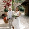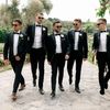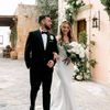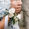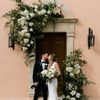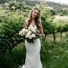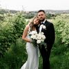 Nestled within the lush, sprawling rows of a vineyard, the scene captures an exquisite moment of romance and elegance. The verdant landscape creates a serene backdrop, perfectly complementing the delicate whites and soft greens of the bride's bouquet. The interplay between the timeless black tuxedo and the pure white gown establishes a harmonious balance, inviting you into a world of classic beauty and serene intimacy. The gentle kiss shared amidst the verdant vines evokes a sense of rustic charm blended with refined grace, an ideal setting for a florist's artistry in capturing life's tender moments.